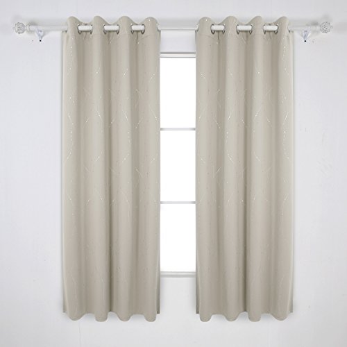 Deconovo Super Soft Dotted Line Foil Printed Thermal Insulated Blackout Curtains Window Treatment Eyelet Blackout Curtains for Nursery with Two Matching Tie Backs 46 x 54 Inch Beige Two Panels