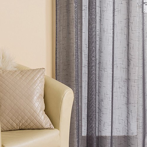 - Grey Linen Look Voile Curtain Panel with delicate silver sparkle threading