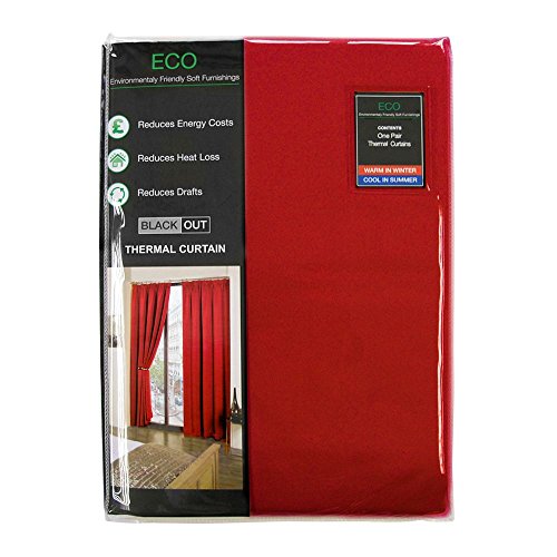 Title : Tony's Textiles Thermal Blackout Supersoft Pencil Pleat Ready Made Curtains 90" x 90" (229 x 229cm) Red by ECO