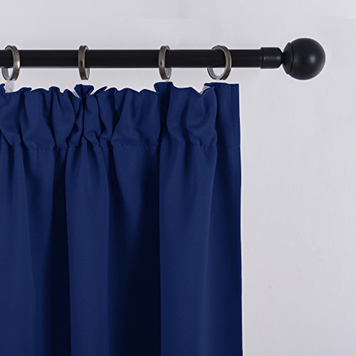 Blackout Pencil Pleat Windows Curtains - PONYDANCE Super Soft solid Thermal Insulated Top Tape Blackout Curtains for Bedroom & Nursery Room, W 46 In by L 54 Inch, Navy Blue, Set of 2